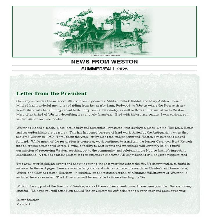 - Newsletters  - Each summer the Warrenton Antiquarian Society publishes a newsletter to share research and events we hope are of interest to the public and our friends. Please take a look.